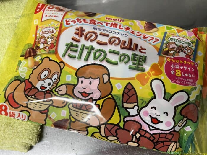 きのこ&たけのこの数は4〜5個くらい。市販のミニパック1袋分って感じですね。