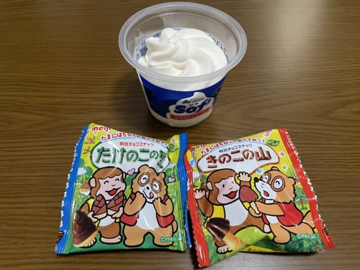きのこたけのこ論争に終わりはありませんが、ここはいわゆるDMZ……。出会うはずのない二つがフルーリーの沼で奇跡のエンカウント。その心中やいかに。