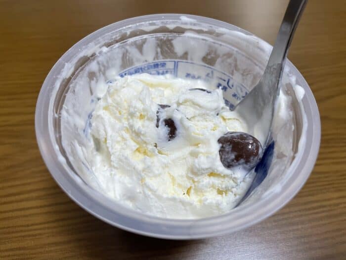 アイスそのものは細かいチョコと混ざっててココア風味。