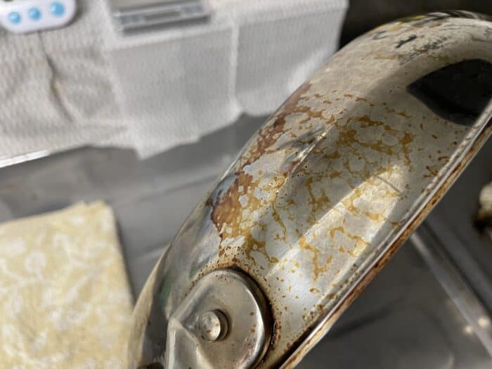メラミンスポンジは表面を傷つけるとあるし……、重曹水を沸騰させて……、これもめんどくさい!